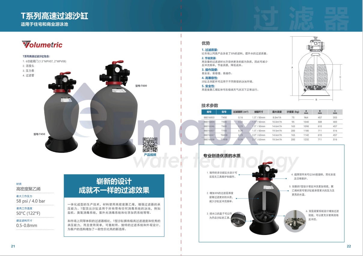 競技池一體化成型的生產(chǎn)技術(shù),材料使用高密度聚乙烯,增強(qiáng)過濾器的承壓能力。T型頂出沙缸適用于所有帶有任何消毒系統(tǒng)的泳池,例如鹽機(jī)、臭氧消毒系統(tǒng),紫外光消毒系統(tǒng)和化學(xué)加藥系統(tǒng)等等。 和市場上同等體積的過濾器相比,T型沙缸擁有極高過濾速度和優(yōu)秀的承壓能力,而且使用簡單,可靠耐用。獨(dú)特的過濾系統(tǒng)和外觀設(shè)計,為客戶的選購增加了一款性價比高的新選擇。