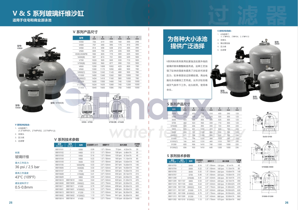 競技池V系列和S系列采用抗腐蝕及抗紫外線的玻璃纖維和聚酯制造而成,這種工藝加強(qiáng)了缸體的強(qiáng)度和提高了沙缸的可承受壓力。缸體表面經(jīng)過防曬處理,再由電腦化自動纏繞工藝而成,允許沙缸在極端天氣條件下工作,經(jīng)久耐用,使用壽命長。